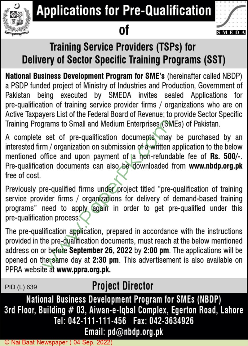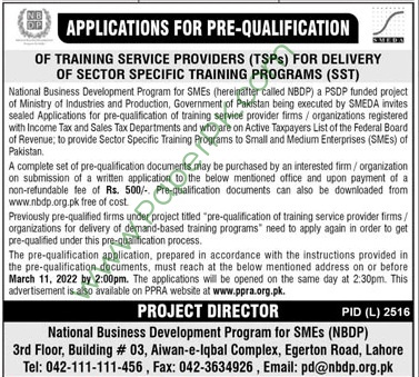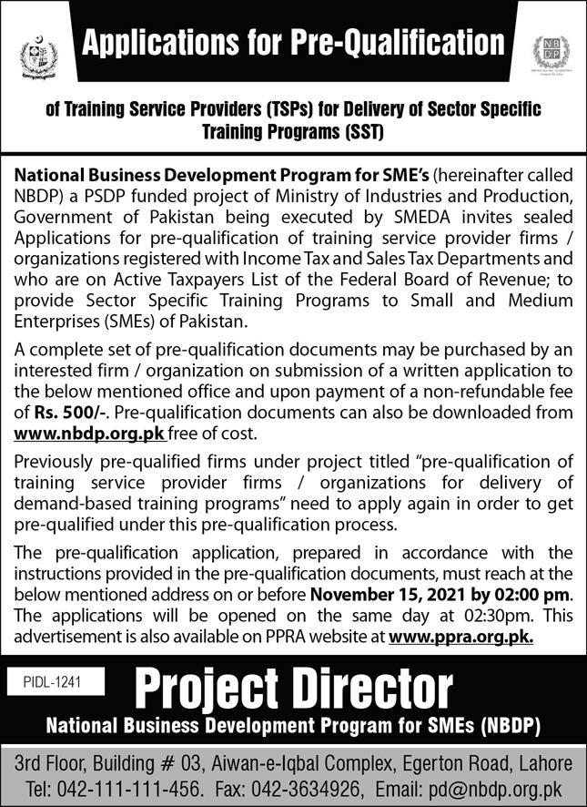 Pre-Qualification of Training Service Providers (TSPs) For Delivery of Sector Specific Training Programs (SST) |