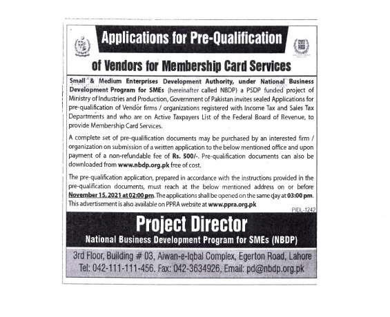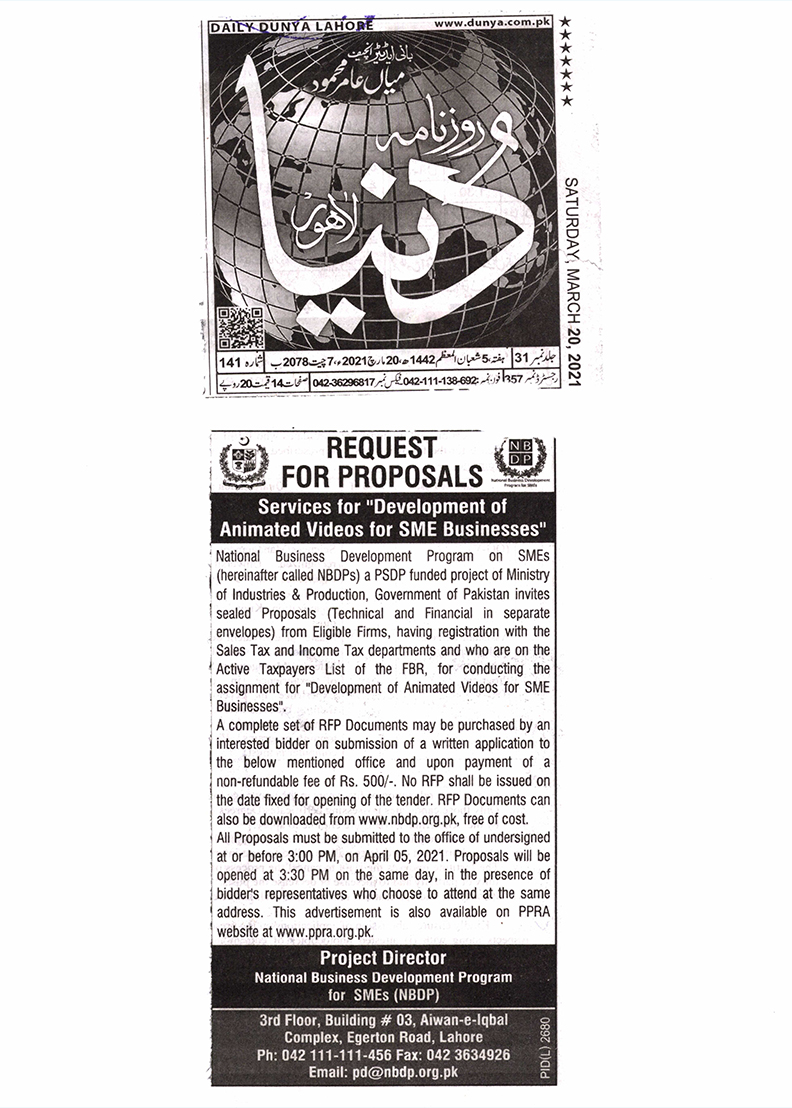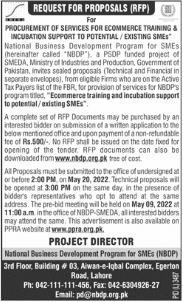 Request for Proposals (RFP) for Procurement of Services for Ecommerce Training & Incubation Support to Potential / Existing SMEs |