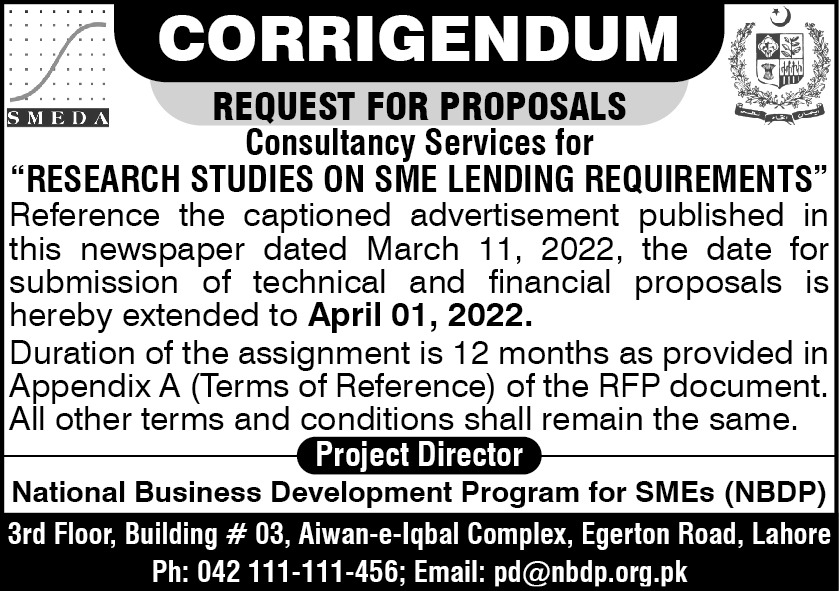 Consultancy Services for "Research Studies on SME Lending Requirements" |